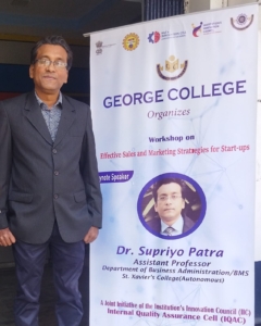 Dr. Supriyo Patra from the Department of BMS/Business Administration of St. Xavier’s College(Autonomous) Kolkata was invited as a KEYNOTE Speaker to conduct a workshop on “Effective Sales and Marketing Strategies for Start-ups” at George College during the Impact Lecture Series on 13th of February 2026.